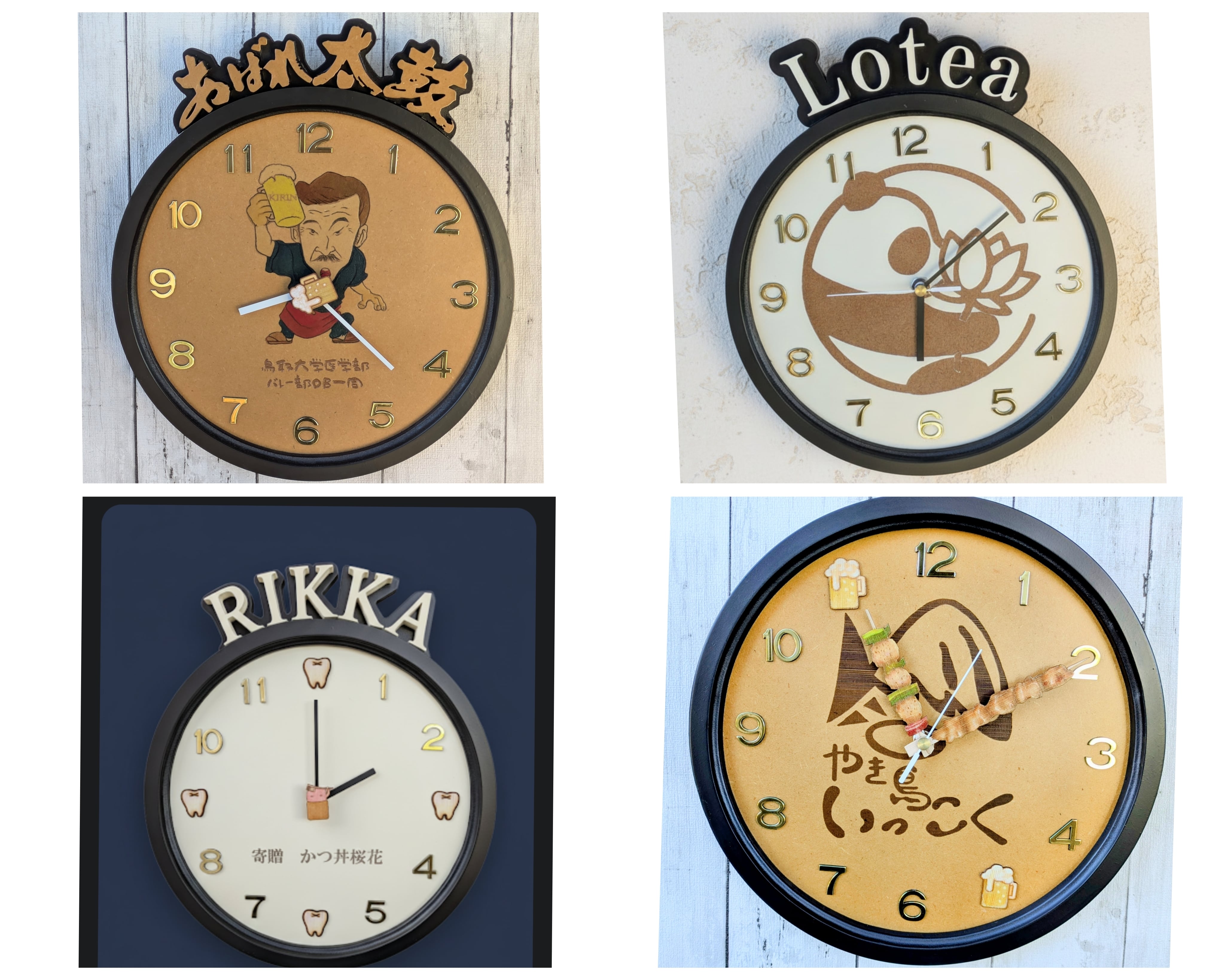 "オーダーメイド壁掛け時計"は、思い出の写真やお気に入りのデザインを取り入れて、特別なオリジナル時計を作成できるアイテムです。開店祝いや何周年祝いなど、大切なお祝いごとに最適なプレゼントとして喜ばれること間違いなしです。