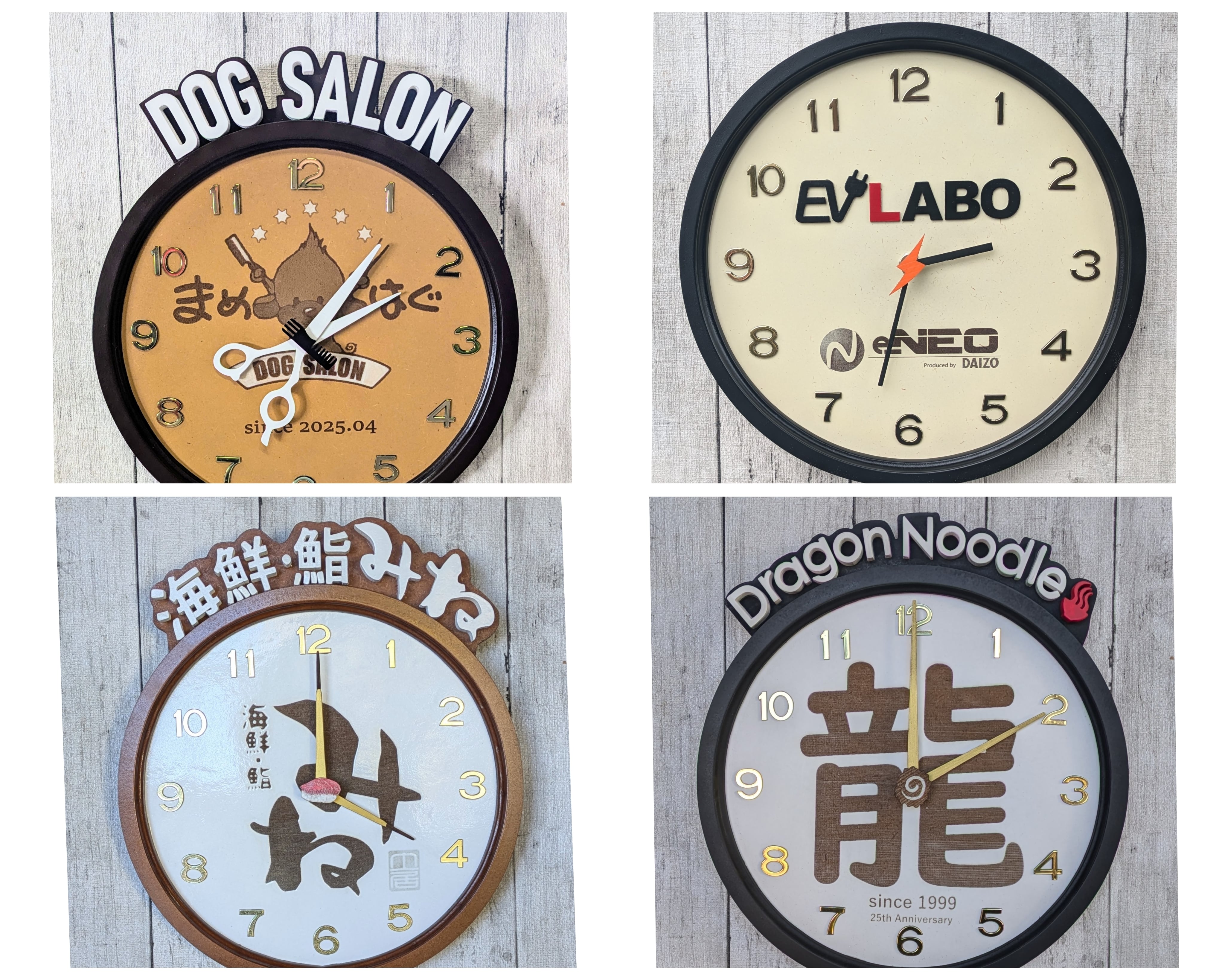 こちらの時計は、美容室や他の職種のオープン祝いや記念に製作を依頼されたものになります。