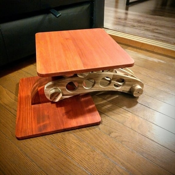 小さなテーブルで上下、角度、前後が 自由に変化するアートなデーブルです。